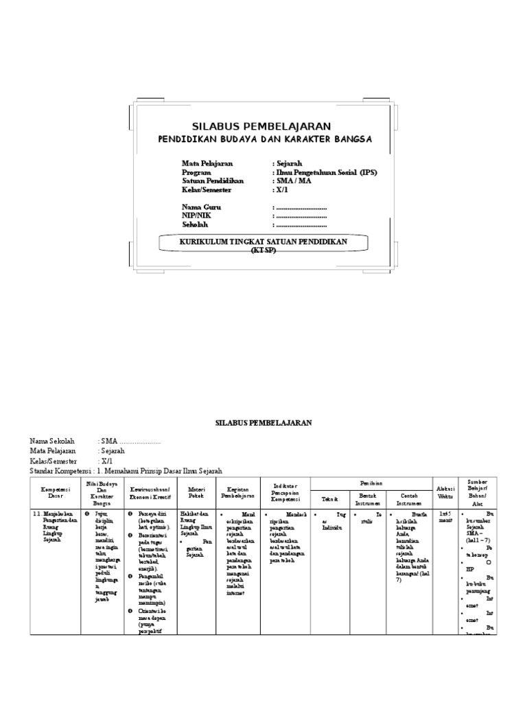 Yang mana bisa bapak/ibu guru rubah sesuai dengan kebutuhan mengajar. Silabus sejarah indonesia kelas 10 ( disini) demikianlah postingan mengenai silabus untuk mata pelajaran sejarah indonesia kelas page 18/57. Download rpp 1 lembar smk kurikulum 2013 revisi 2017/2018/2019/2020/2021 kelas x xi xii semester 1 2 ganjil genap. Perangkat pembelajaran rpp silabus agama islam sma ma mak smk kurikulum 2013 kls 10 x semester 1 2 shopee indonesia. Download silabus sejarah peminatan kelas 10 tahun 2020 (3 kolom) dipersilahkan untuk mendonwload lampiran tersebut pada tautan yang telah disediakan agar mendapatkan file yang lengkap dan utuh.